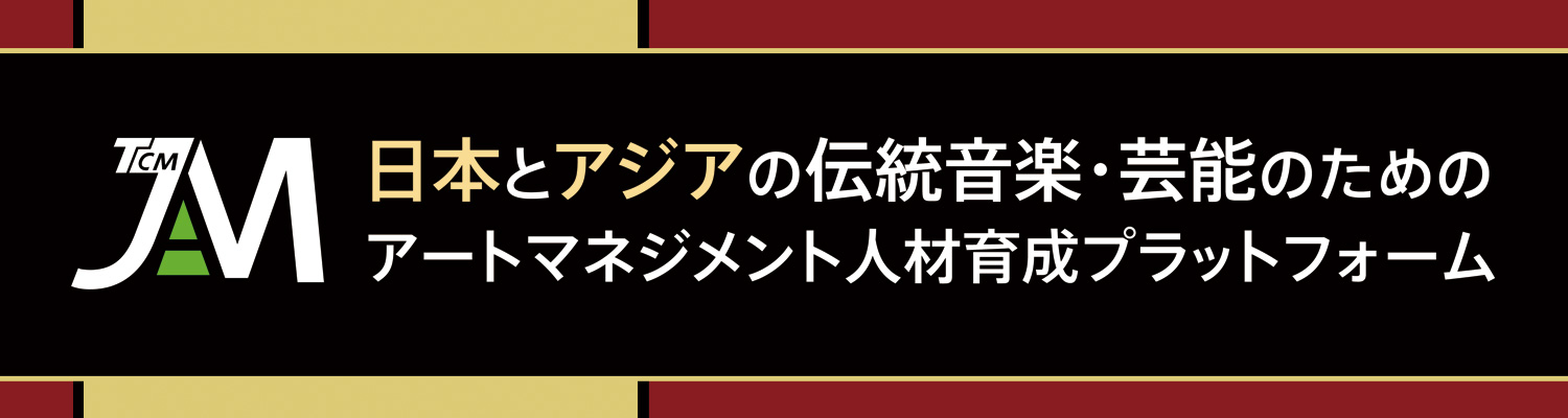 【TCM-JAM】ティーシーエムジャムと読みます。東京音楽大学(Tokyo College of Music)、日本(Japan)、アジア(Asia)、伝統音楽・芸能(Traditional Music & performing arts)、アートマネジメント(Arts Management)を表す愛称です。