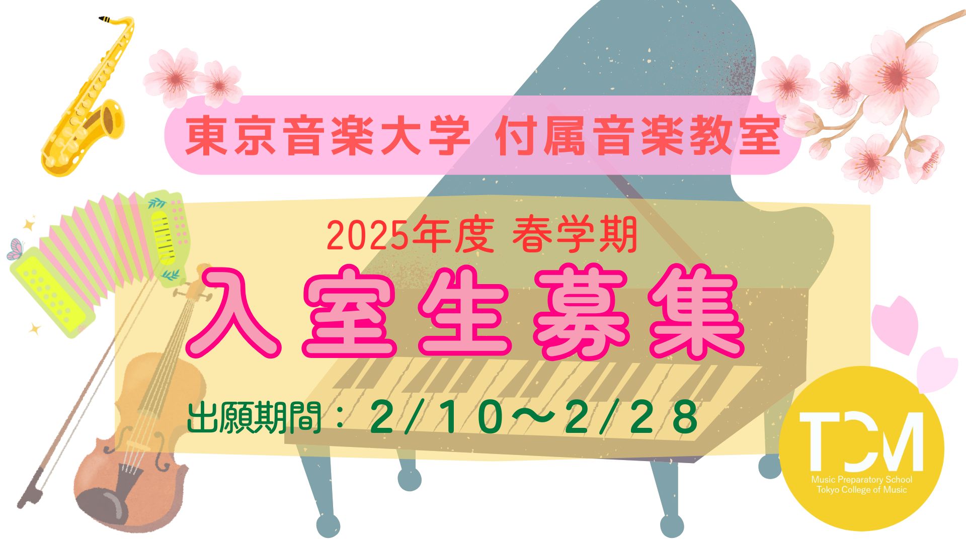 【東京音楽大学付属音楽教室】 2025年秋学期入室の出願について
