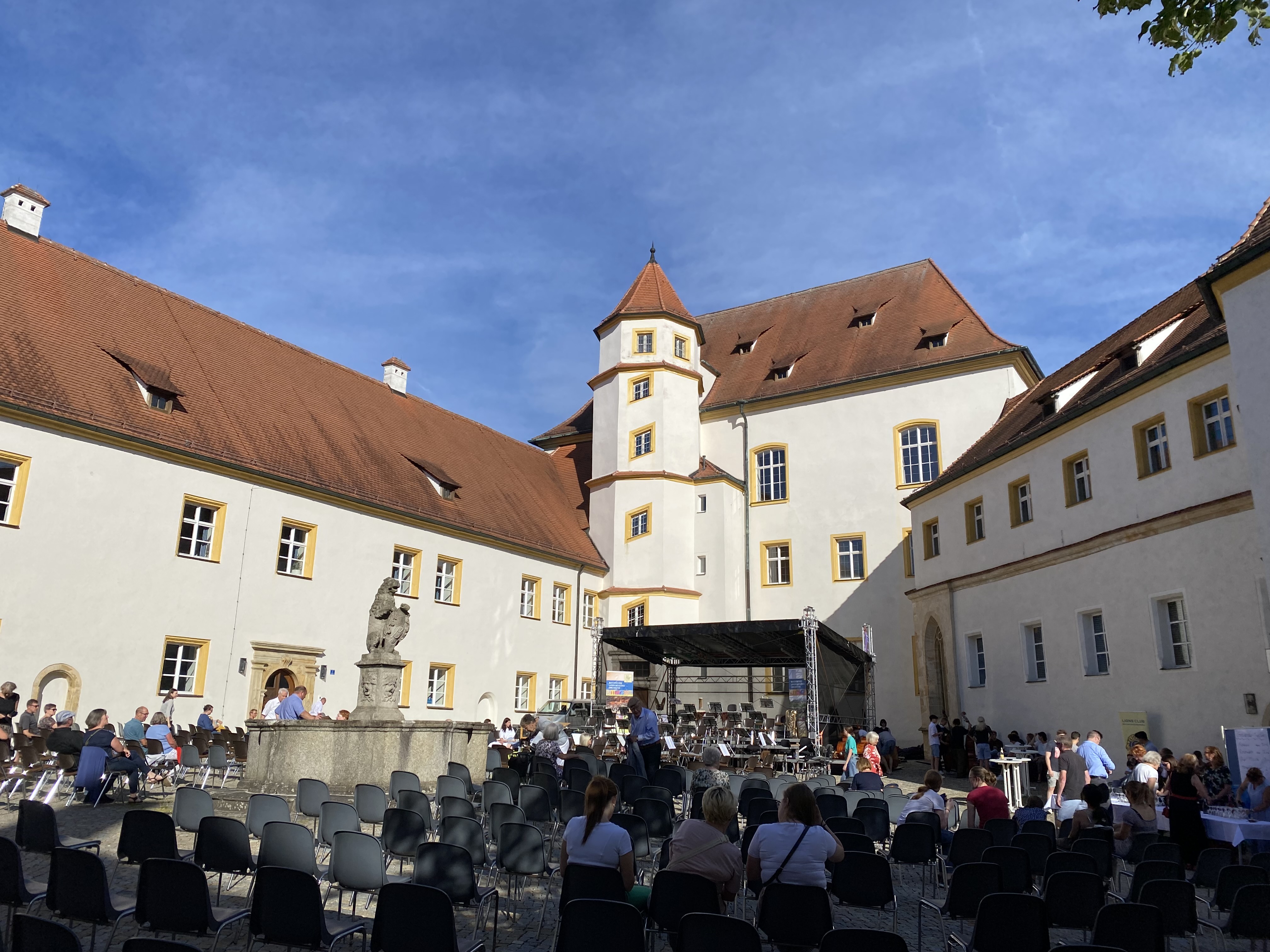 ▲ ズルツバッハ・ローゼンベルク城の中庭での演奏会のリハーサルの様子。本番は中庭にたくさんのお客さまがいらしてくださいました。