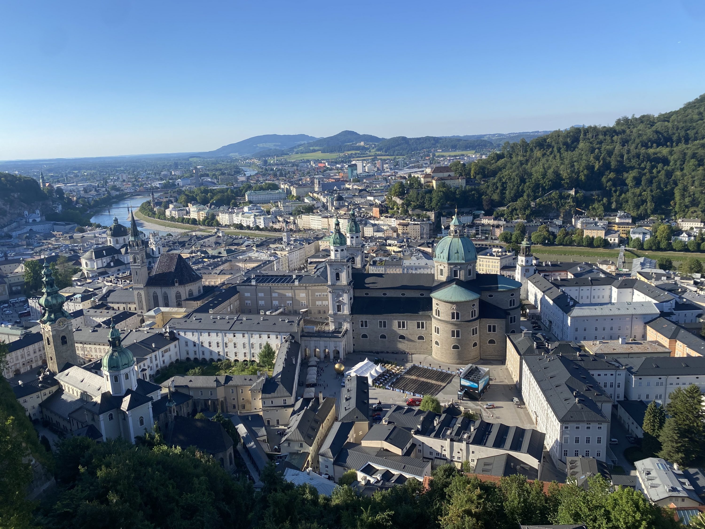 ▲ ホーエンザルツブルク城(上)と、城から見たザルツブルクの街並み(下)。この景色は圧巻でした。いつかもう一度、行ってみたい場所です。