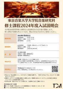7月8日(土)10:30~ 2024年度大学院修士課程入試説明会をTCMホールにて開催します。