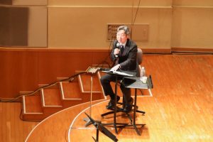 コンサートのほか、レパートリー研究の講座にも、東京音楽大学シンフォニック ウインド アンサンブルがモデルバンドとして出演させていただきました。この講座では、伊勢敏之先生の指揮の下、本学の中橋愛生教授によって、海外から出版された新譜や話題曲を中心に、日常練習、式典、コンサートでの使用など、用途を踏まえて選曲・解説されました。小編成から大編成までさまざまな曲が紹介されました。