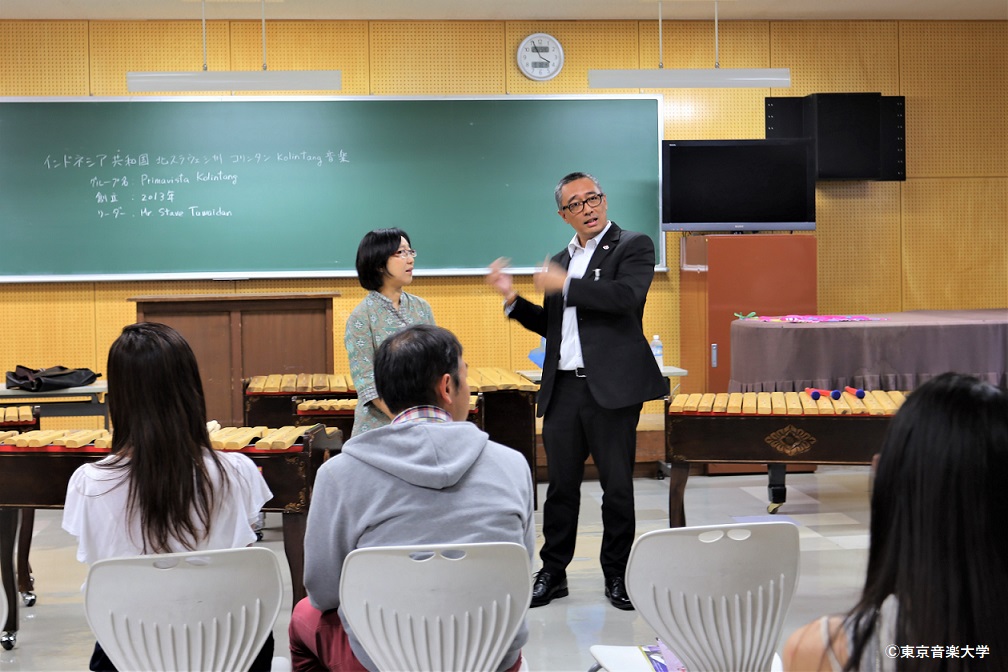 インドネシア大使館の招聘で来日している北スラウェシ島のコリンタン音楽チームによる音楽鑑賞&ワークショップが、学部専門共通科目「アジア音楽の理論と奏法」の授業のなかで開催されました。