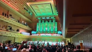 第2部がサウジ国立オケ・合唱団による演奏です。弦楽器はヴァイオリンとコントラバスのみで、中声部がない編成。そこにウードやラバーブといったアラブの伝統弦楽器、ズマーラという縦笛、ダフなどの打楽器が加わり、中東のDNAを感じられるすばらしい音色がホールに響き渡りましたね。