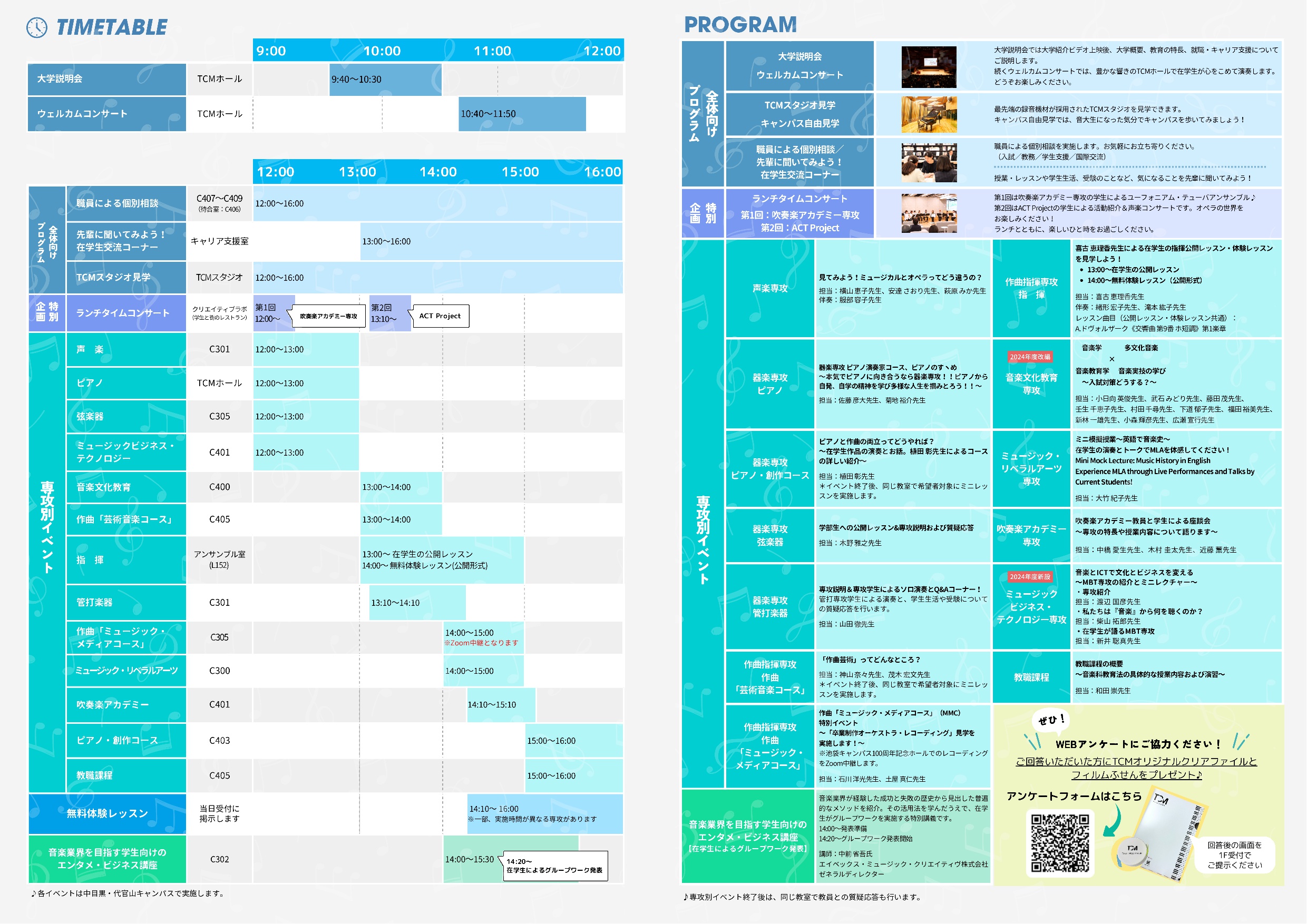 大学説明会とウェルカムコンサートは定員に達し次第、中継会場のモニターにてご視聴(事前申込み不要)となりますので、ご了承ください。