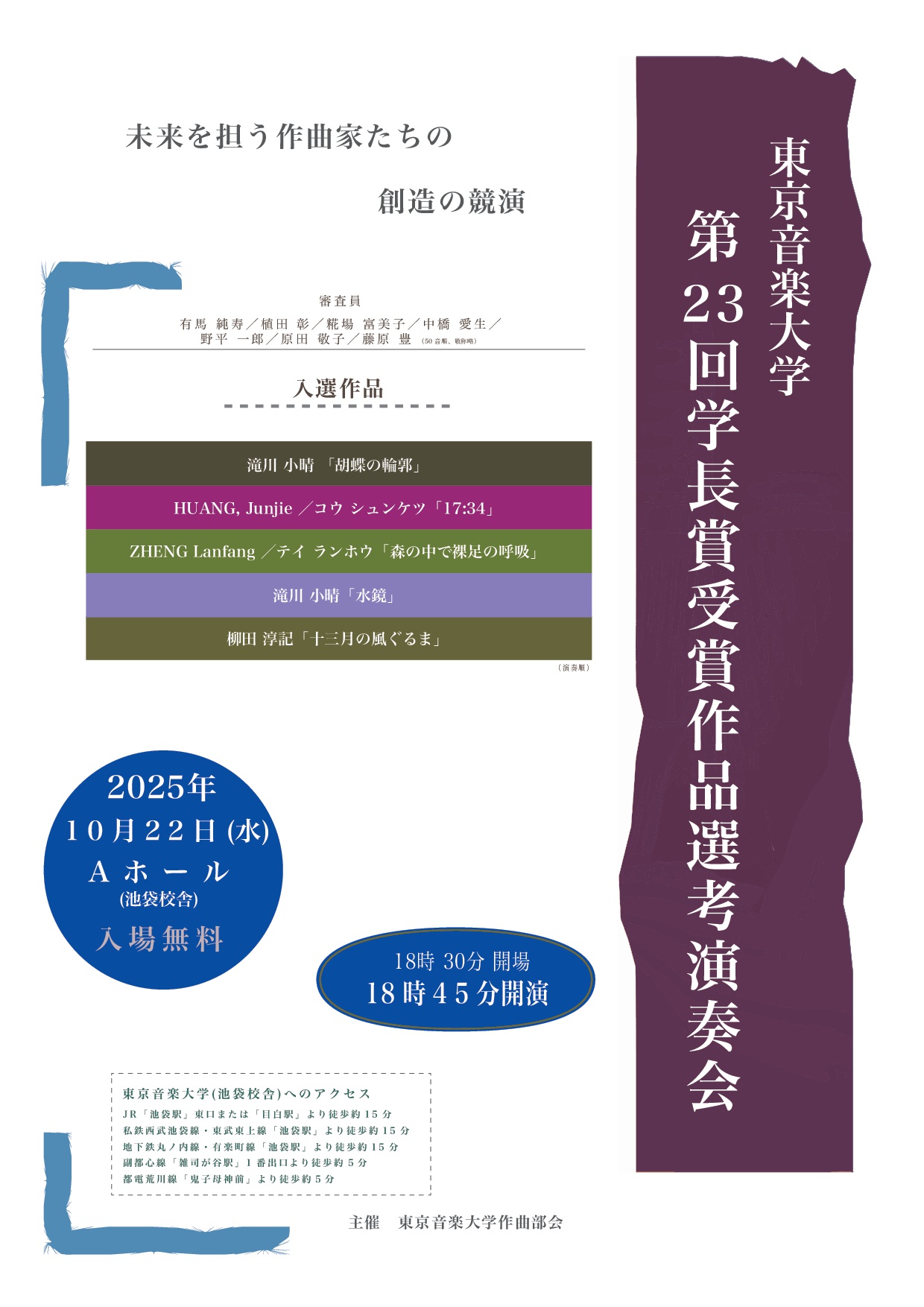 2025年10月22日に、「第23回学長賞受賞者作品選考演奏会 ~未来を担う作曲家たちの創造の競演~」が行われ、