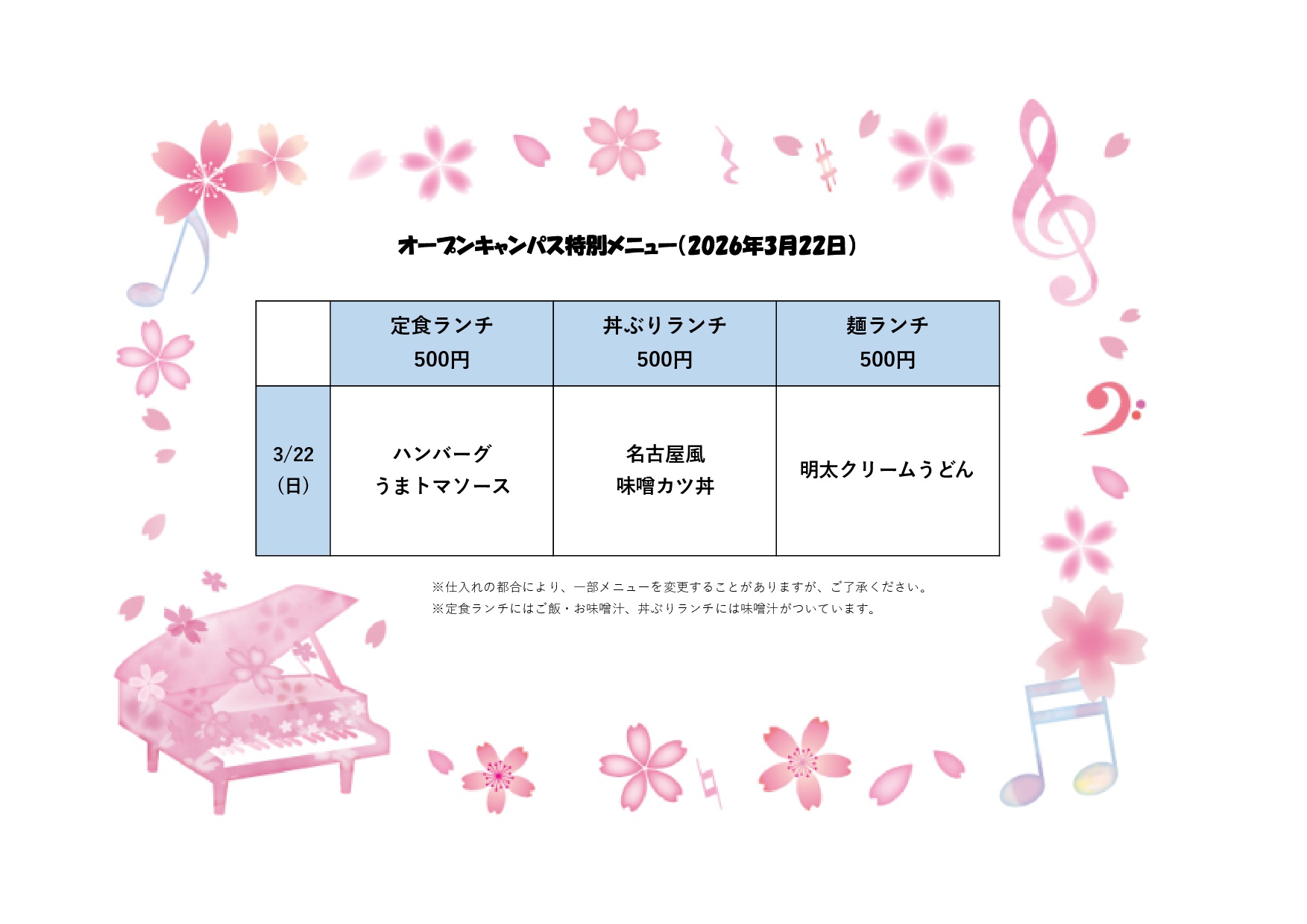 *楽譜は当日配付し、吹奏楽アカデミー専攻生とパート決めを行います。希望パートや担当楽器などがあれば申込フォームの「特記事項」欄にご入力ください。