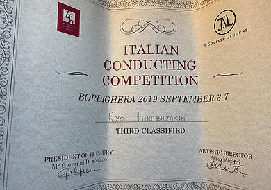 「 第1回イタリア国際指揮者コンクール」は、西イタリアの地中海に面するボルディゲーラで2019年9月3日から7日に行われました。書類選考から、現地では50数名16名8名3名とラウンドを進み、最終的に第3位を受賞することができました。少しばかりの賞金とボルディゲーラ交響楽団とのコンサートで指揮する機会をいただけることとなりました。