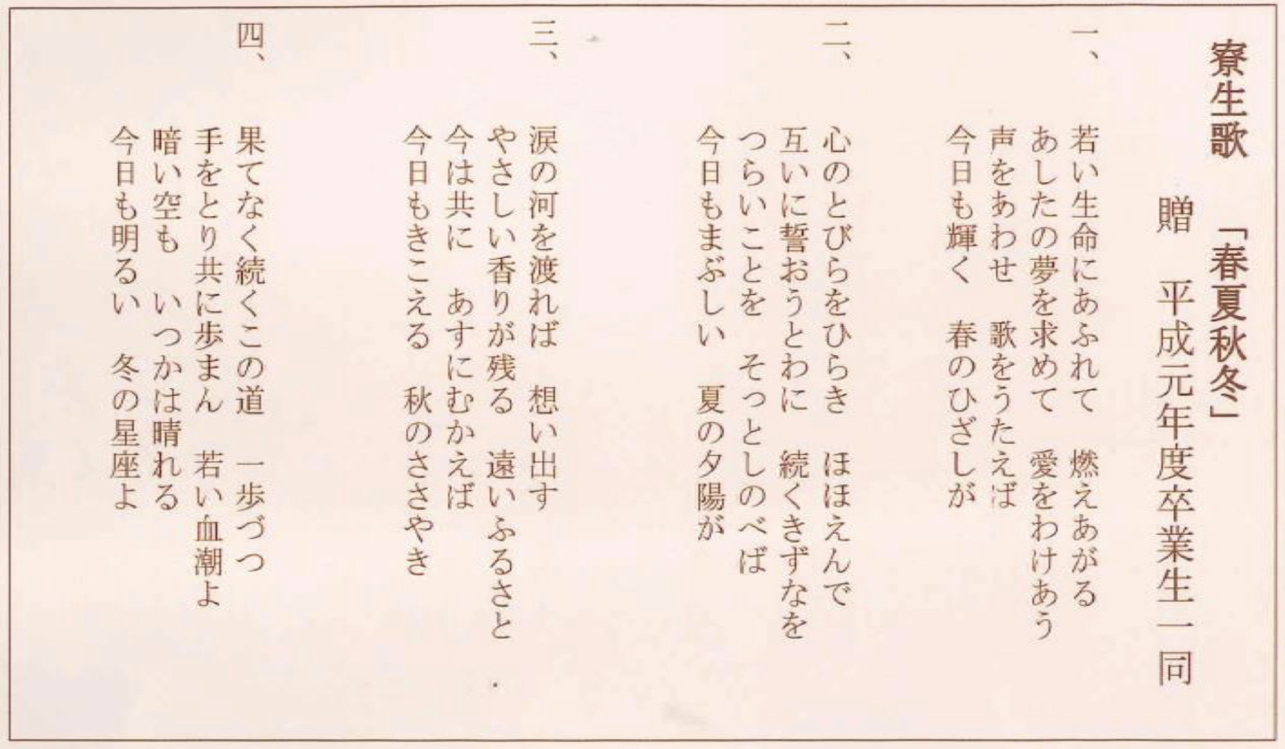 寮生歌『春夏秋冬』