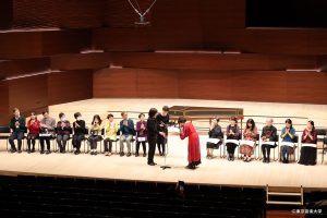 チェンバロにつづき、4名の受講生によるニ胡演奏です。連綿とした柔らかい二胡の音にピアノ伴奏が合わさり、どこかノスタルジックな音色がホールに響き渡りました。