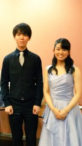 ▲ 3年生の時に、厚木裕香さん(当時学部4年)とカワイ表参道「パウゼ」でのジョイントリサイタルにて