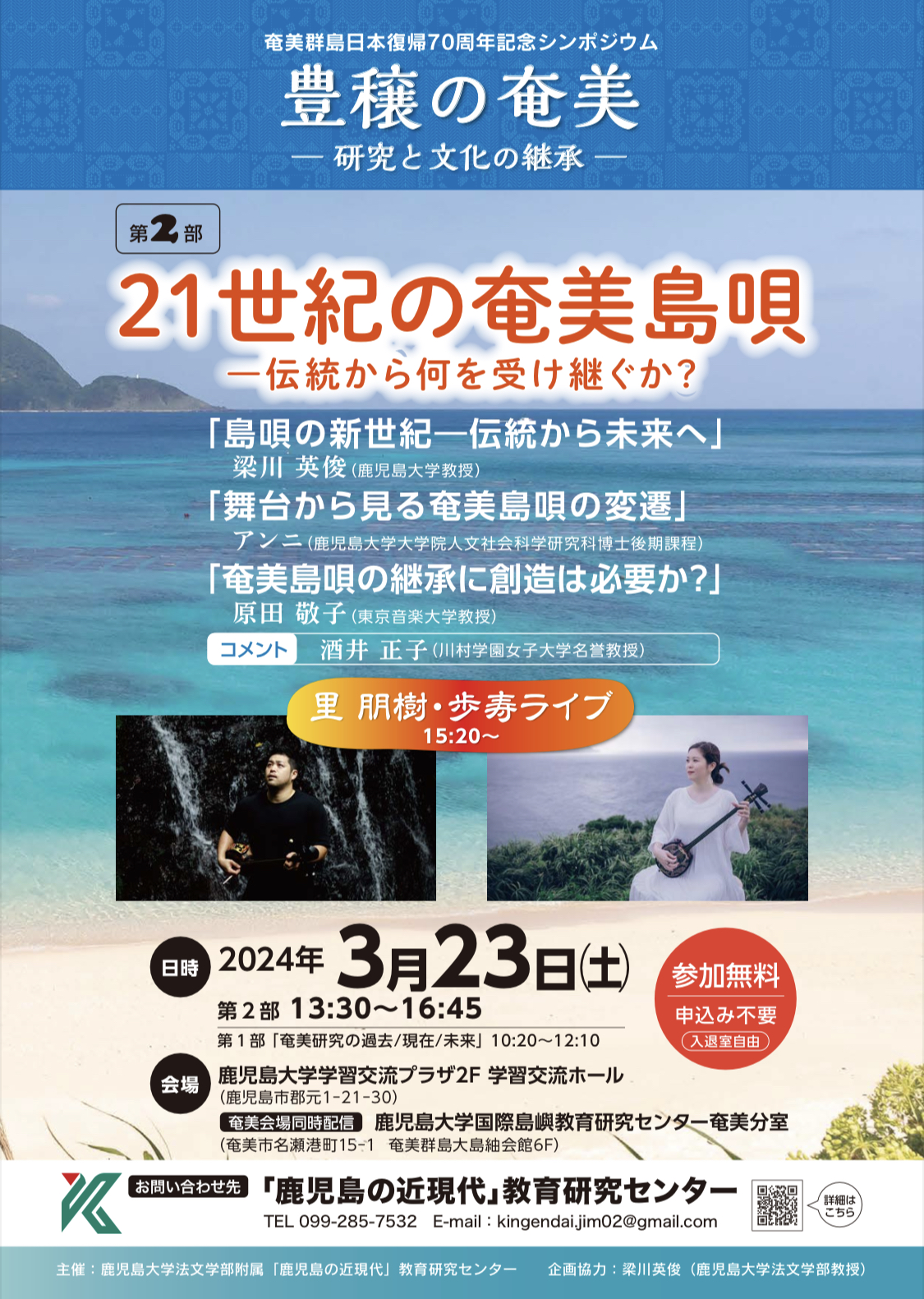 ■ 内 容:原田敬子准教授が作曲され、約3年をかけて手作りで制作された「奄美市民歌」が遂に完成。奄美市民歌制作のプロセスを語りながら、完成された楽曲が放送初演される。