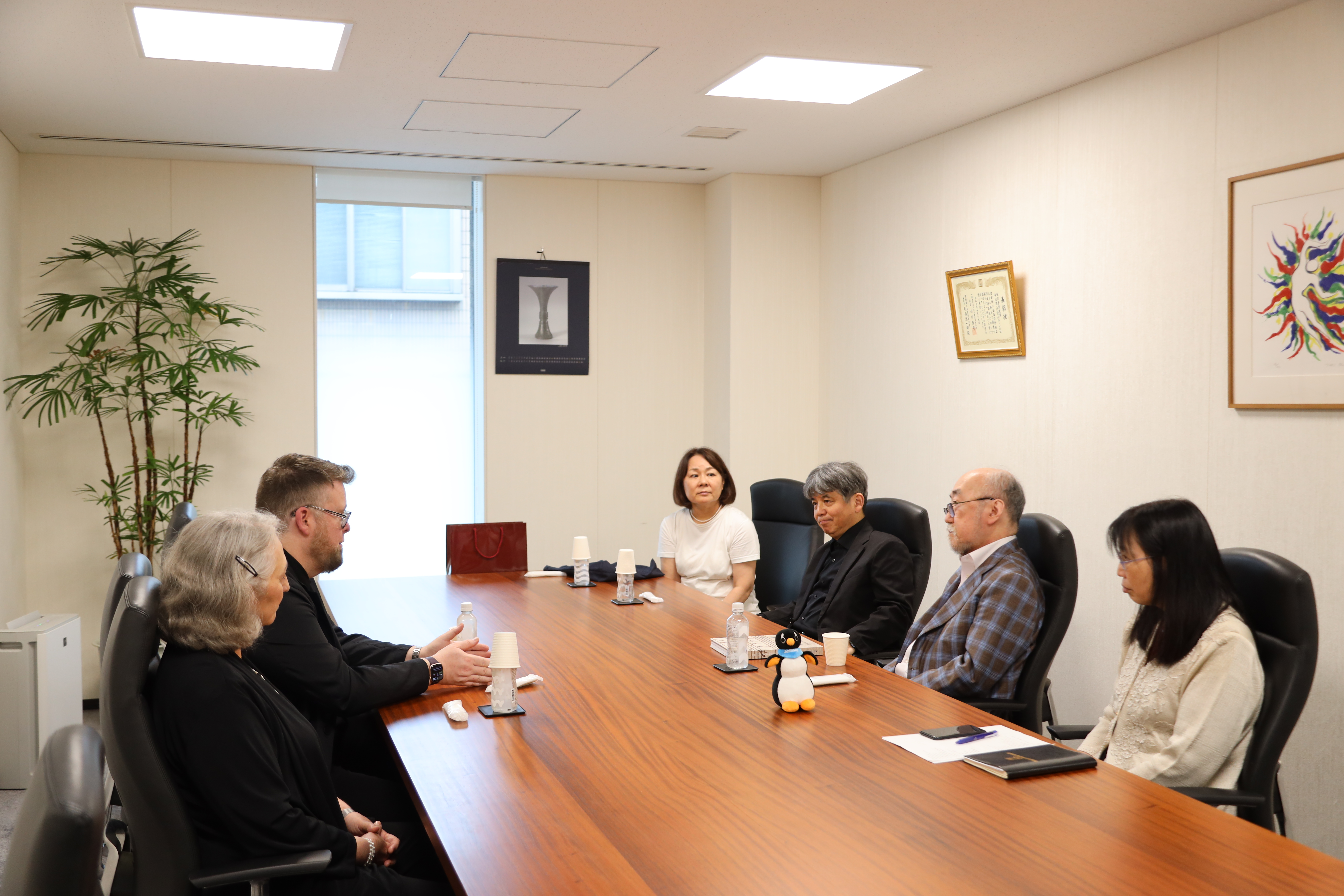 On June 3, 2025, Dean and Director of the Music Division of Juilliard School David Serkin Ludwig and Associate Dean for Enrollment Management Kathleen Tesar paid a courtesy call at TCM. They discussed possibilities of future collaboration with our President Ichiro Nodaira, Vice President and Director of the Center of International Affairs Noriko Ohtake, Project Professor Toshio Hosokawa (Composer).