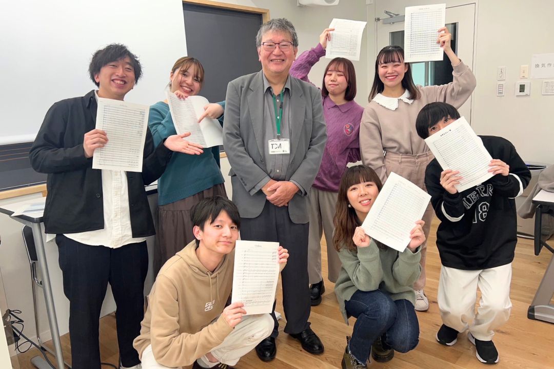 吹奏楽の現場では、多様なバンド事情に対応するための作編曲のスキルが必要とされます。その初歩的な部分は他専攻と共通の授業である3年次必修科目「作曲法」でも扱いますが、さらに専門的に学びたいと思った学生のために開講されているのが、この授業です。吹奏楽に特化した作編曲法を学び、実際に吹奏楽団を使って試演も行います。吹奏楽アカデミー専攻生のみが履修できる選択科目です。(担当教員:天野正道)